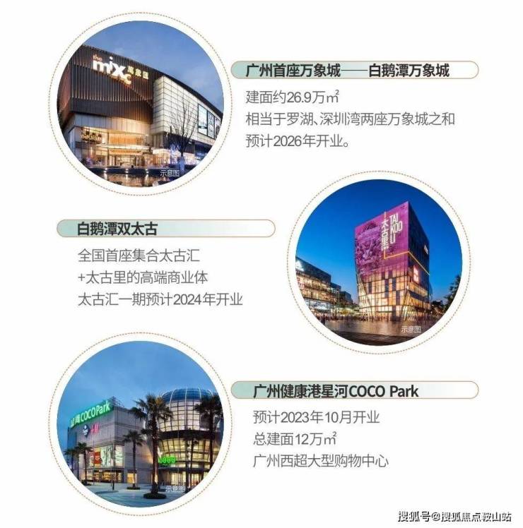 约2km规模内双邃古、华润万象城等旗舰商业进驻,“三馆合一”湾区文明地标竣工,TOP级商业与城市地标荟萃,加快使命世界级商圈。