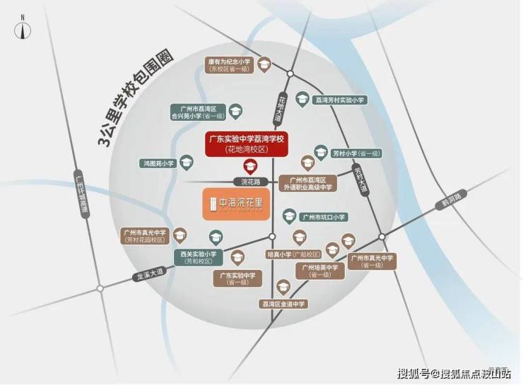 3km规模内3所百年要点中学、5所省/市要点小学,教育资源集合,优教优育气氛稠密: